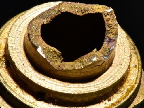 Copper tabs bent downward in defective sprinkler head